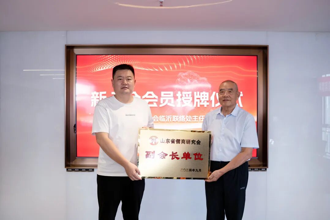 新會員授牌儀式上,臨沂市政協(xié)文史委原主任、儒商研究會臨沂聯(lián)絡(luò)處主任朱瑞田為新入會會員授牌,新會員代表在發(fā)言中表示,將以加入儒商研究會為契機,與同仁攜手并肩協(xié)同發(fā)展,共同書寫儒商精神新精彩。